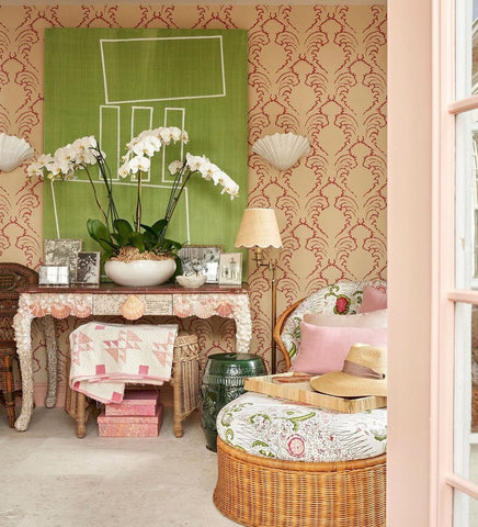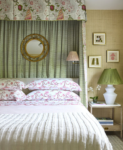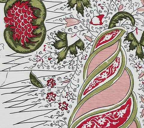 Quadrille Fabric: St Barts - Multi Greens / Pinks / Reds / Taupe on White Belgian Linen / Cotton