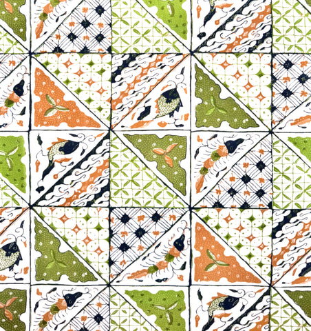 China Seas Fabric: Sunnyjim Batik - Custom Multi Greens / Tan on Cream Suncloth (OUTDOOR)