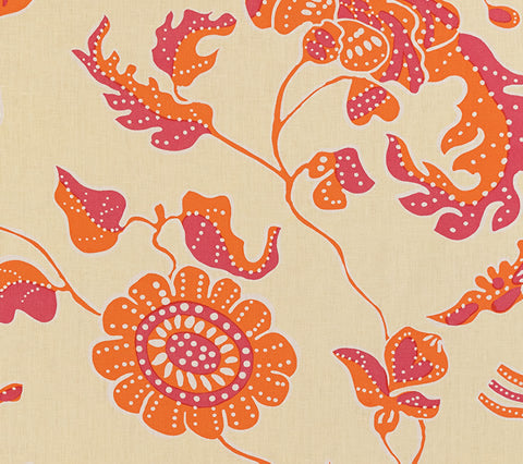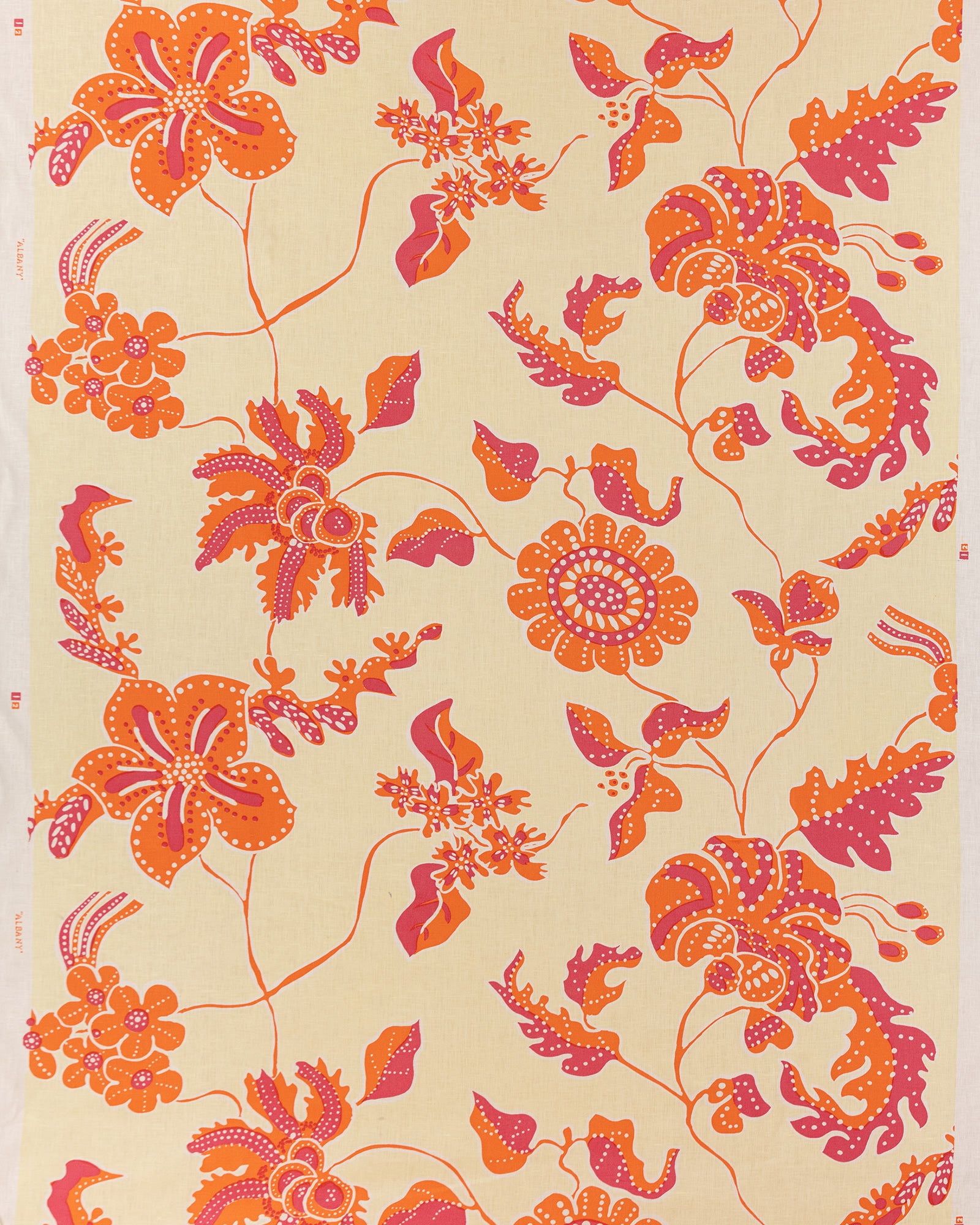 Alan Campbell Fabric: Albany - Custom Orange / Magenta on Cream 100% Linen
