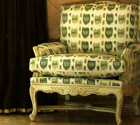 Alan Campbell Fabric: Cintra - Custom Pink / Green / Brown on White Belgian Linen / Cotton