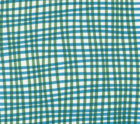 Alan Campbell Fabric: Country Check - Custom Blue / Green on White Belgian Linen / Cotton
