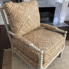The design walks a precise line between mid-century graphic boldness and something more ancient - there's an echo of Greek key, of Aztec textile, of Art Deco ironwork. It doesn't belong to any single era, which is why it refuses to date.