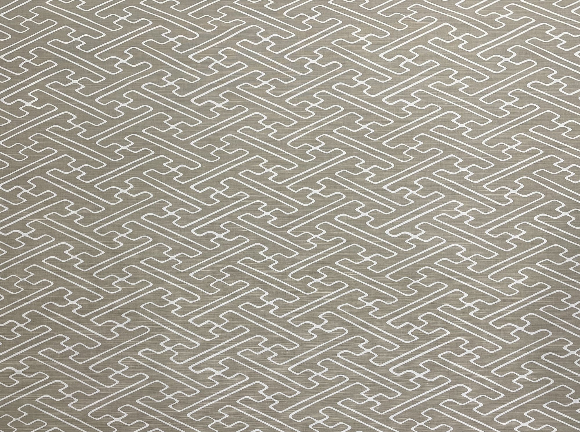 Alan Campbell Fabric: Saya Gata - Pale Taupe on White Belgian Linen / Cotton