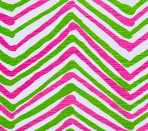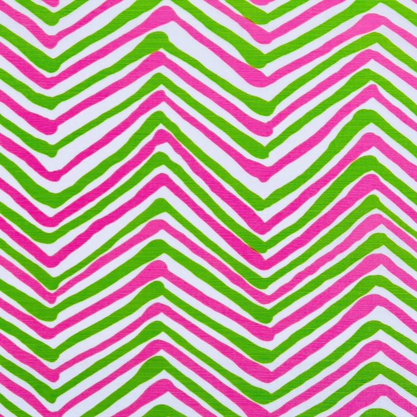 Alan Campbell Fabric: Zig Zag Multicolor - Custom Pink / Green on White Belgian Linen / Cotton