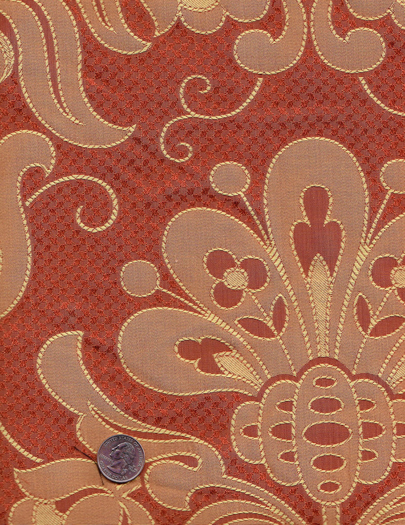 Quadrille Woven Fabric: Castille - Flame; Cotton/Viscose, Imported from Spain