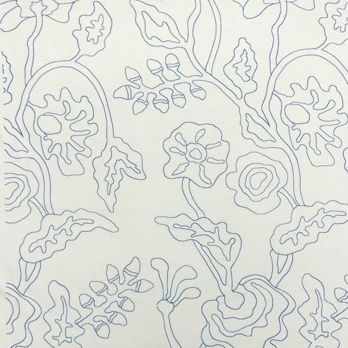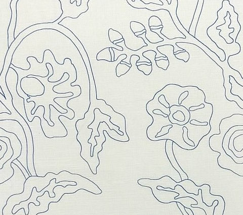 Alan Campbell Fabric: Potalla Outline - Custom French Blue on White Belgian Linen/Cotton