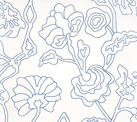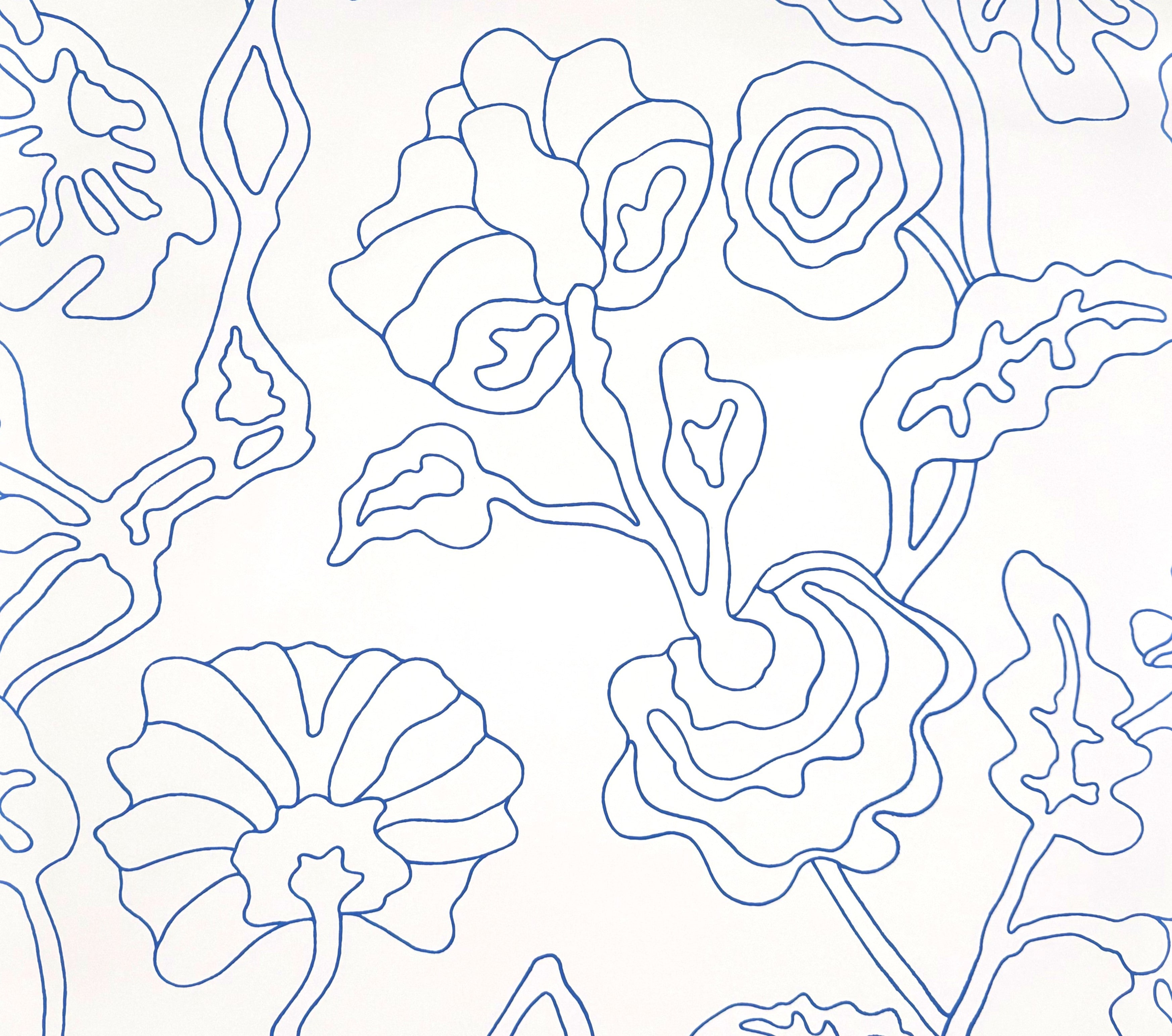 Alan Campbell Wallpaper: Potalla Outline - Custom French Blue on White Paper (5 YARD MINIMUM)