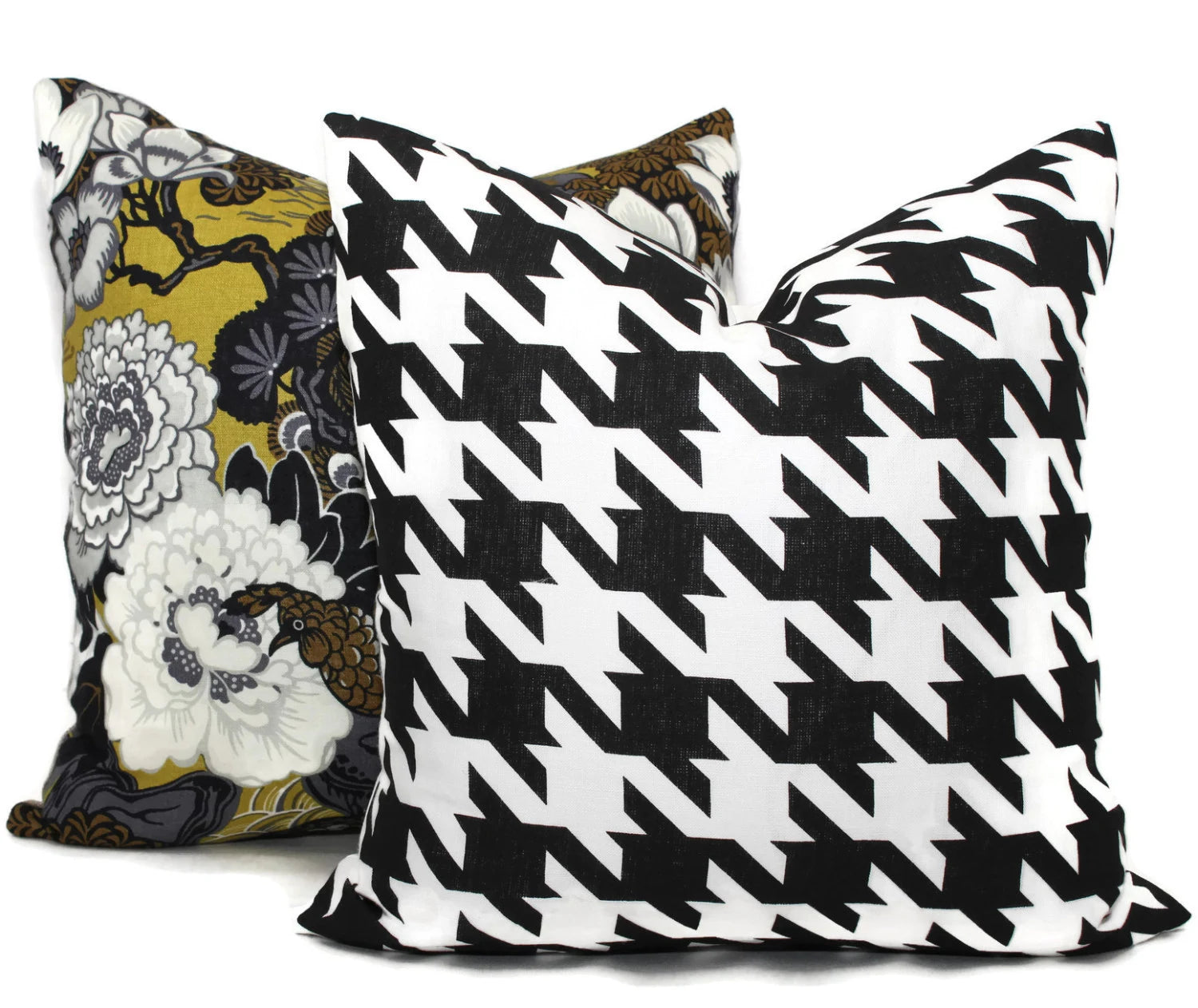 China Seas Fabric: Ames Houndstooth - Custom Royal Blue on Tinted Linen / Cotton