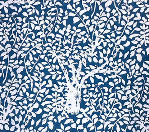 China Seas Fabric: Arbre de Matisse Reverse - Custom Dark Blue on White 100% Linen