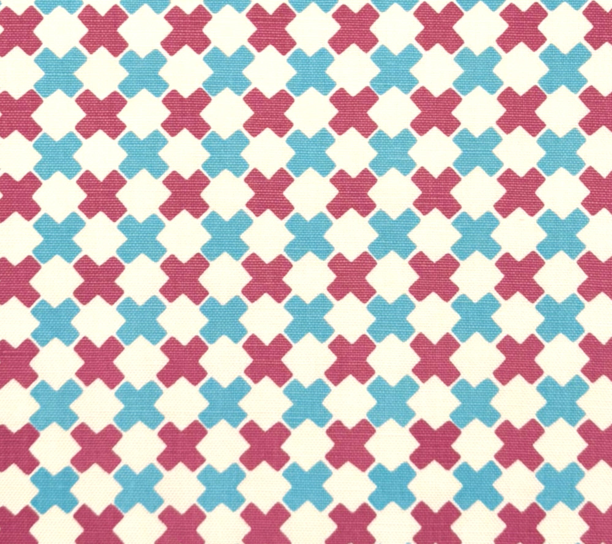 China Seas Fabric: Double Cross Multi - Custom Lilac / New Blue on White Belgian Linen / Cotton