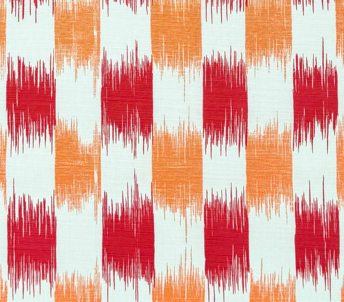 China Seas Fabric: II Blue Ikat - Red / Orange on Tinted Belgian Linen/Cotton