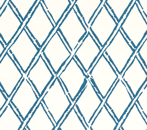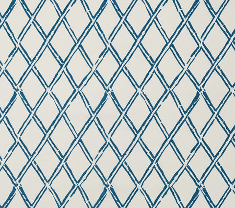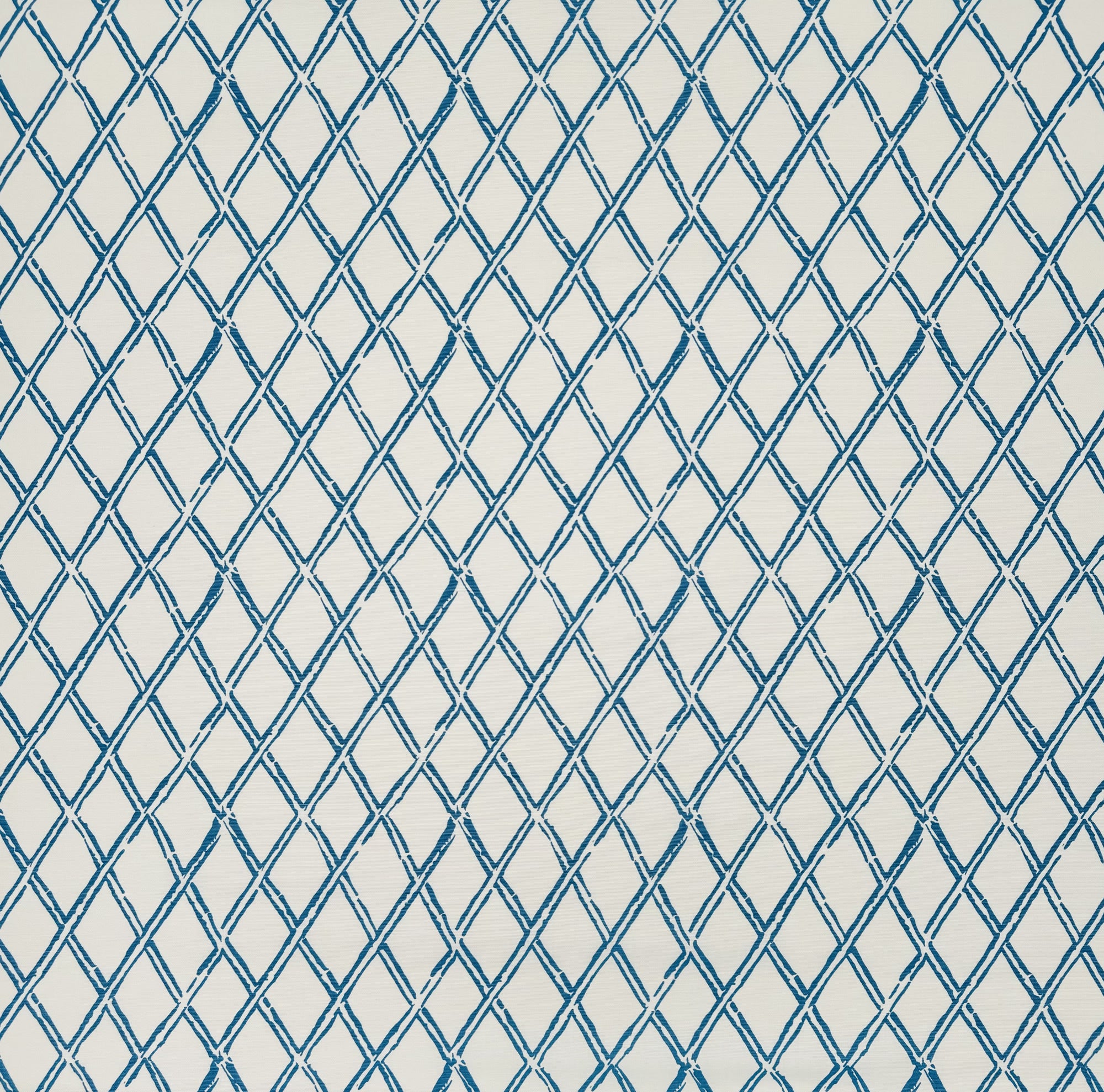 China Seas Fabric: Lyford Diamond Bamboo - Custom Blue on White Belgian Linen / Cotton