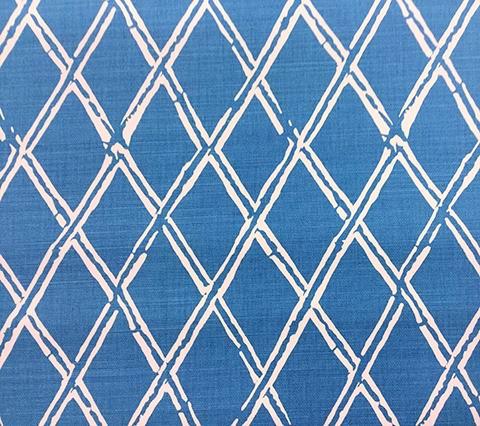 China Seas Fabric: Lyford Diamond Bamboo - Custom White Dove on Giles Blue Belgian Linen / Cotton