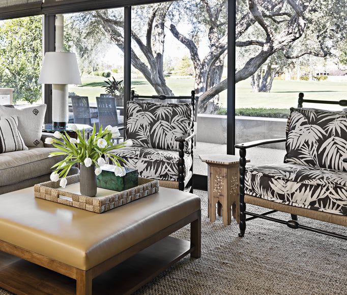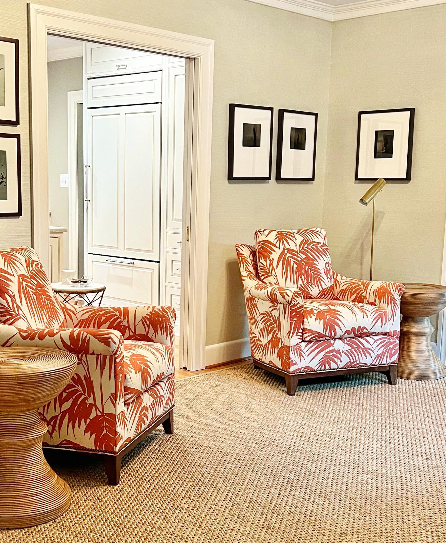 A beautifully subtle, allover bamboo or palm leaf print, perfect for coastal styles.