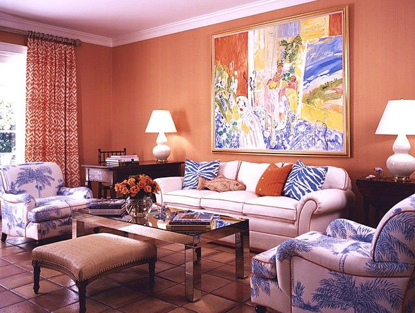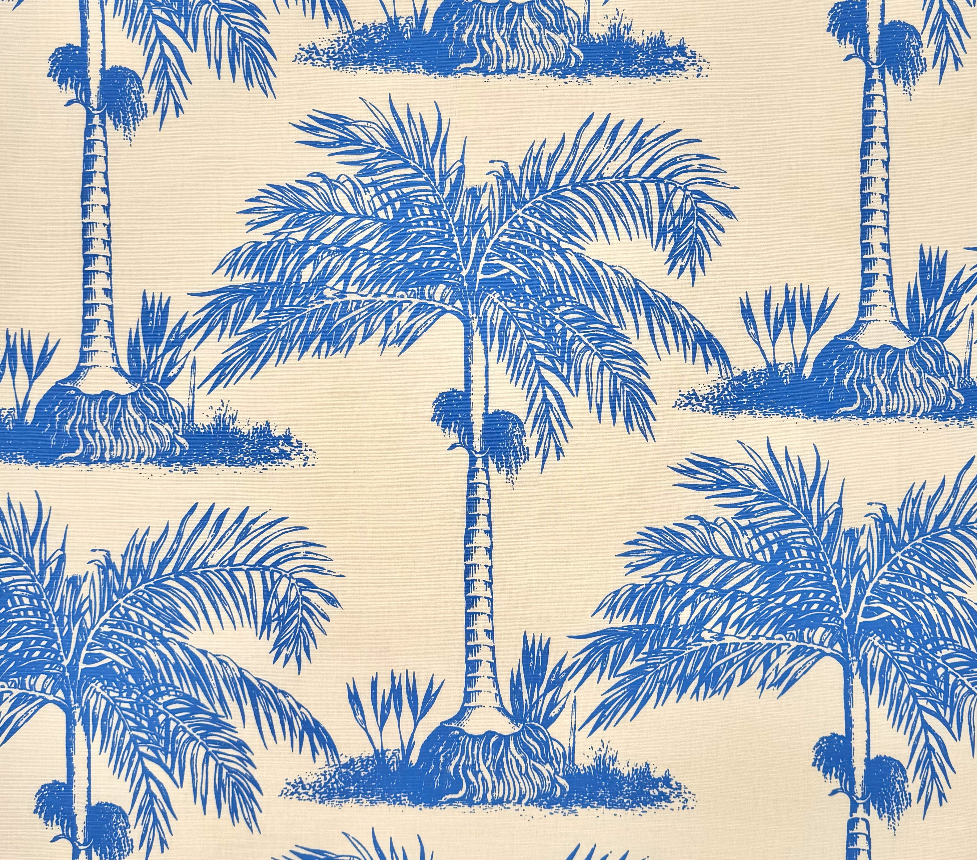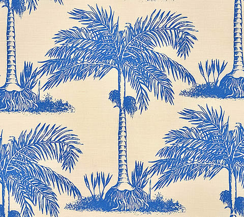 China Seas Fabric: Palmerie - Custom French Blue on Tinted Belgian Linen / Cotton