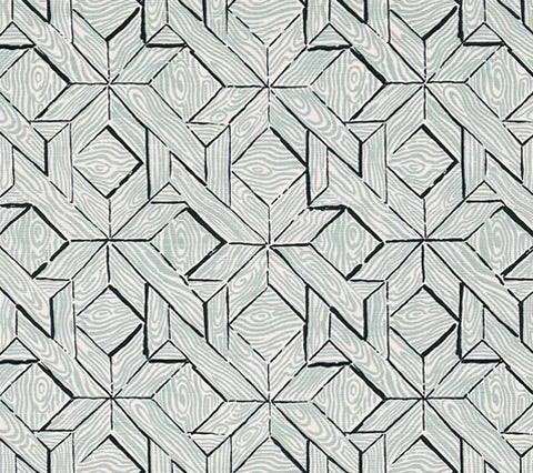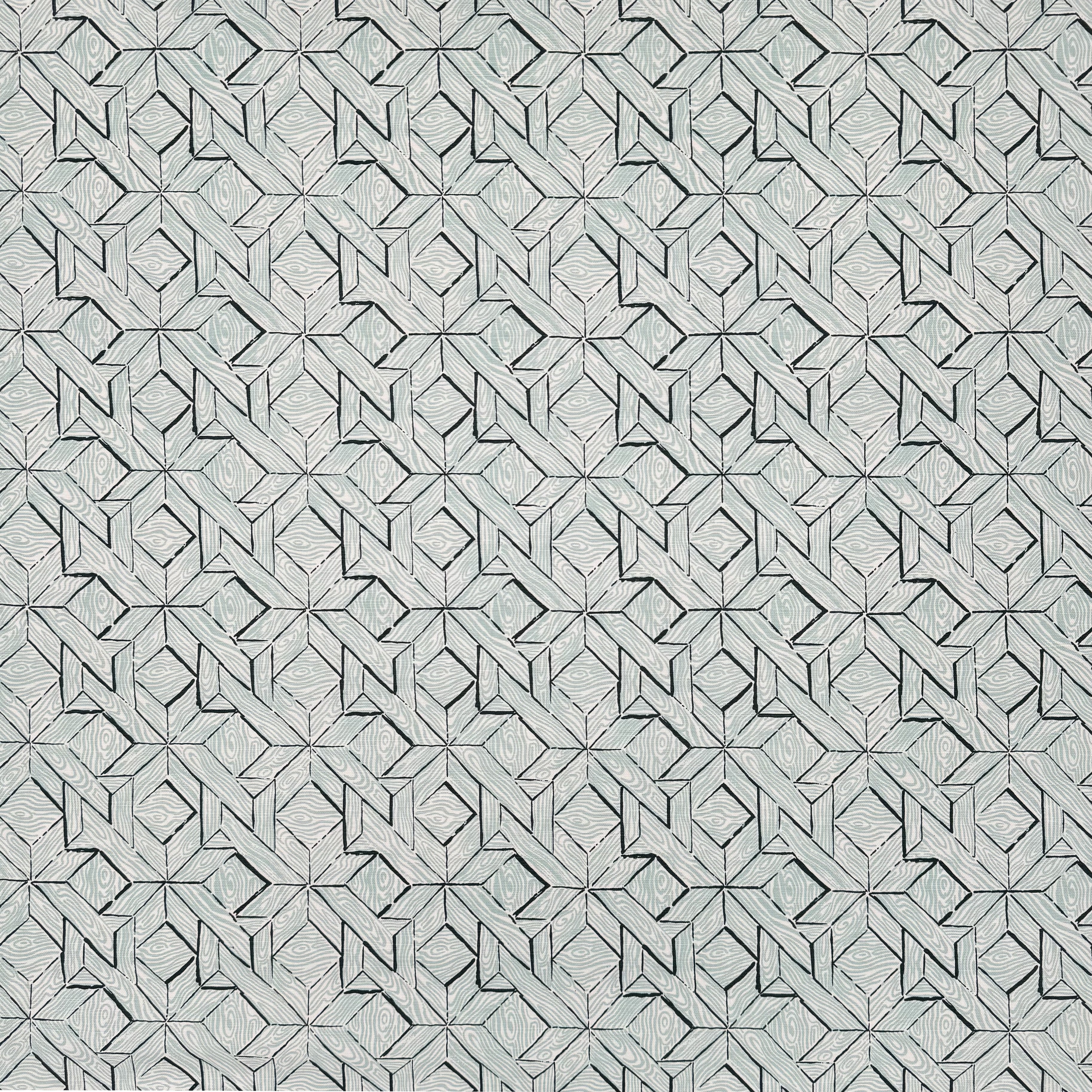 China Seas Fabric: Parquetry - Custom Blue / Turquoise on White Belgian Linen / Cotton