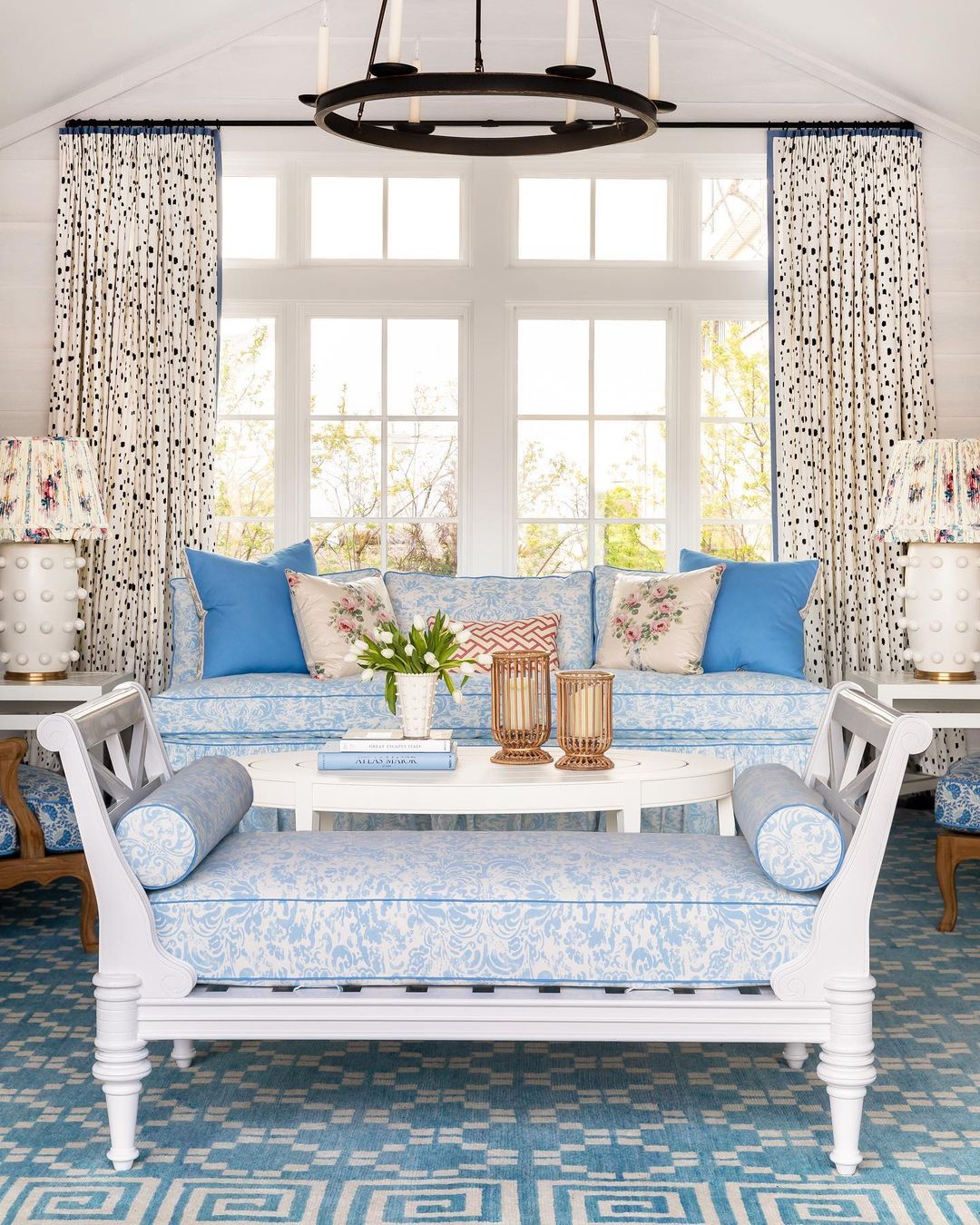 China Seas Fabric: San Marco - Custom Zibby Blue on White Suncloth (OUTDOOR)