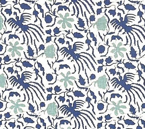 China Seas Fabric: Seya - Custom Blue / Sky on White 100% Linen