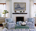 China Seas Fabric: Seya - Custom Blue / Sky on White Belgian Linen / Cotton