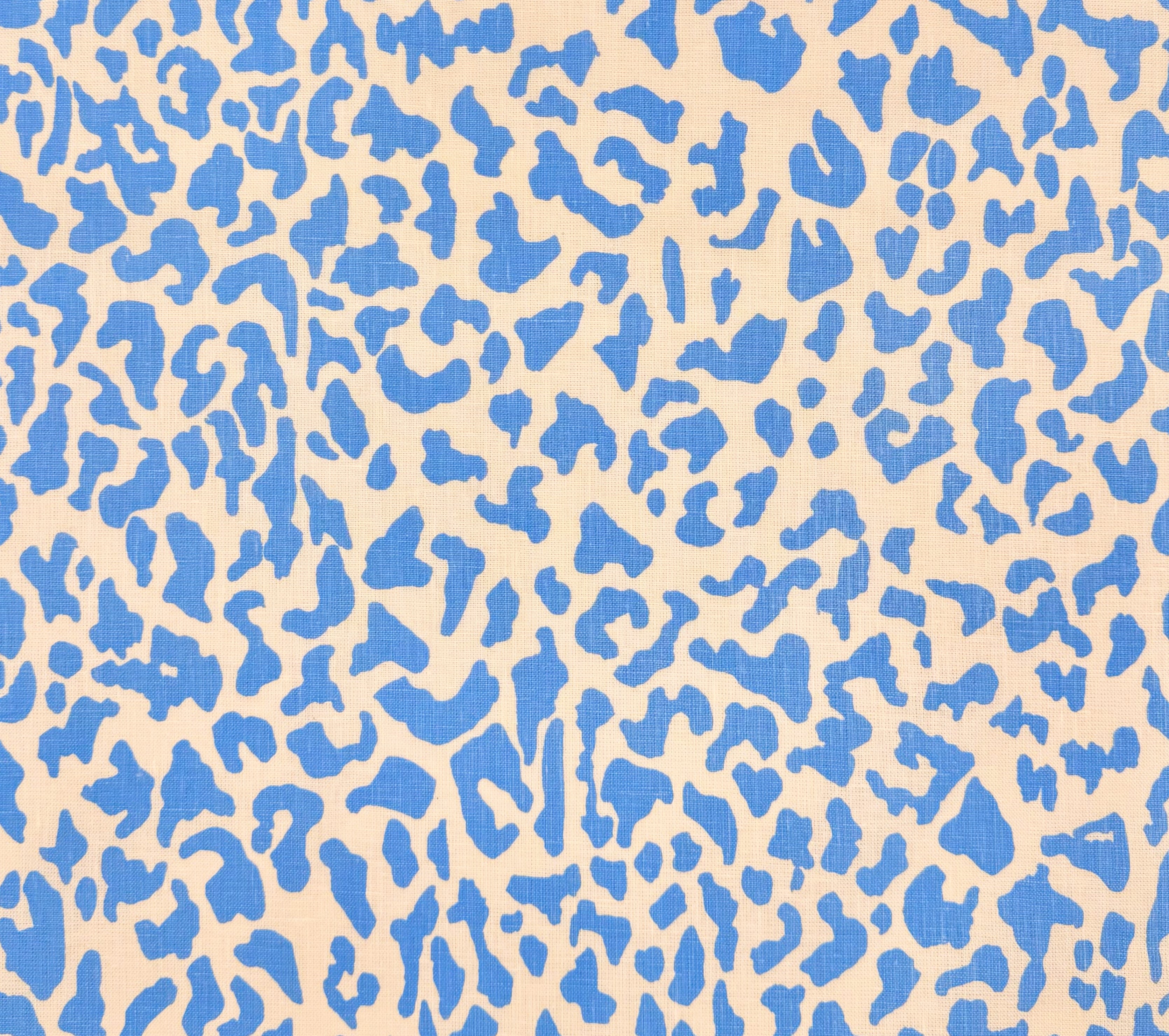 China Seas Fabric: Zeze Leopard - Celestial Blue on Tinted 100% Belgian Linen