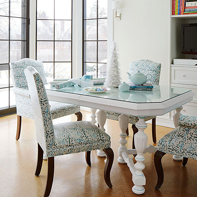 China Seas: Hulai Batik - Custom Blue / Brown on White Suncloth (OUTDOOR)