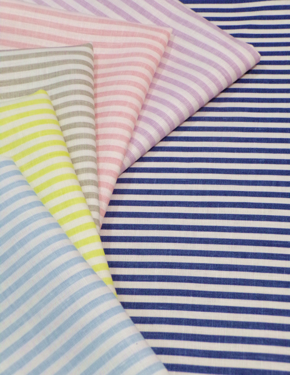 China Seas Fabric: Lulu Stripe - Custom Sky Blue on White 100% Linen
