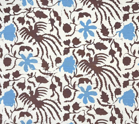 China Seas Fabric: Seya - Custom Blue / Brown on Tinted Belgian Linen / Cotton
