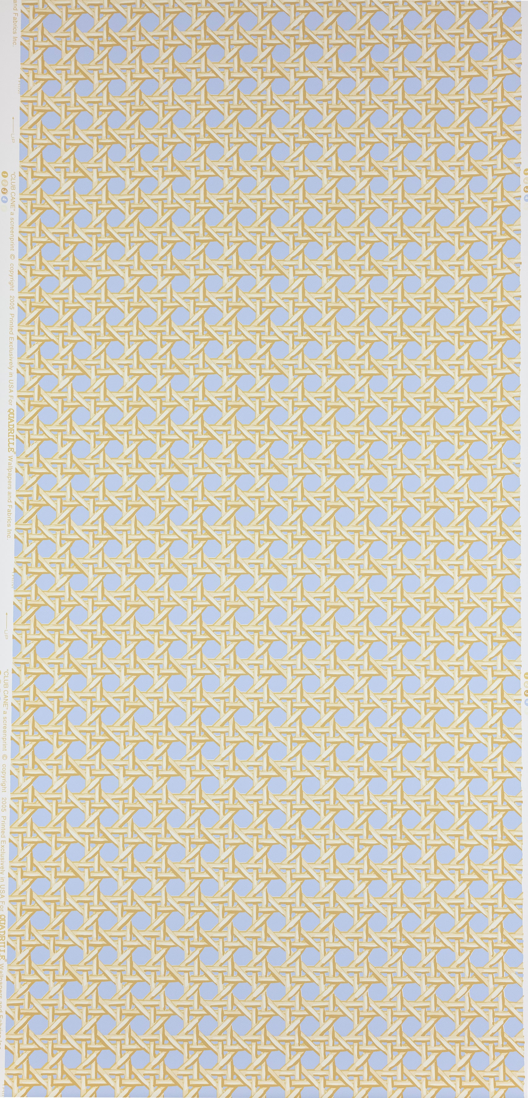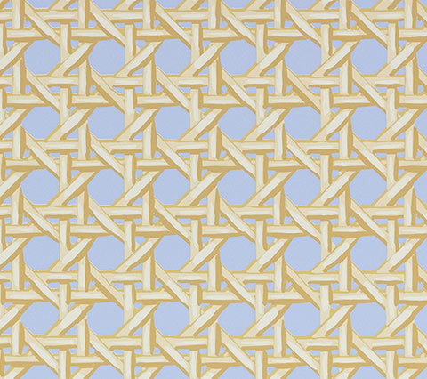 China Seas Wallpaper: Club Cane - Custom Creams / Taupe on Blue (FIVE YARD MINIMUM)