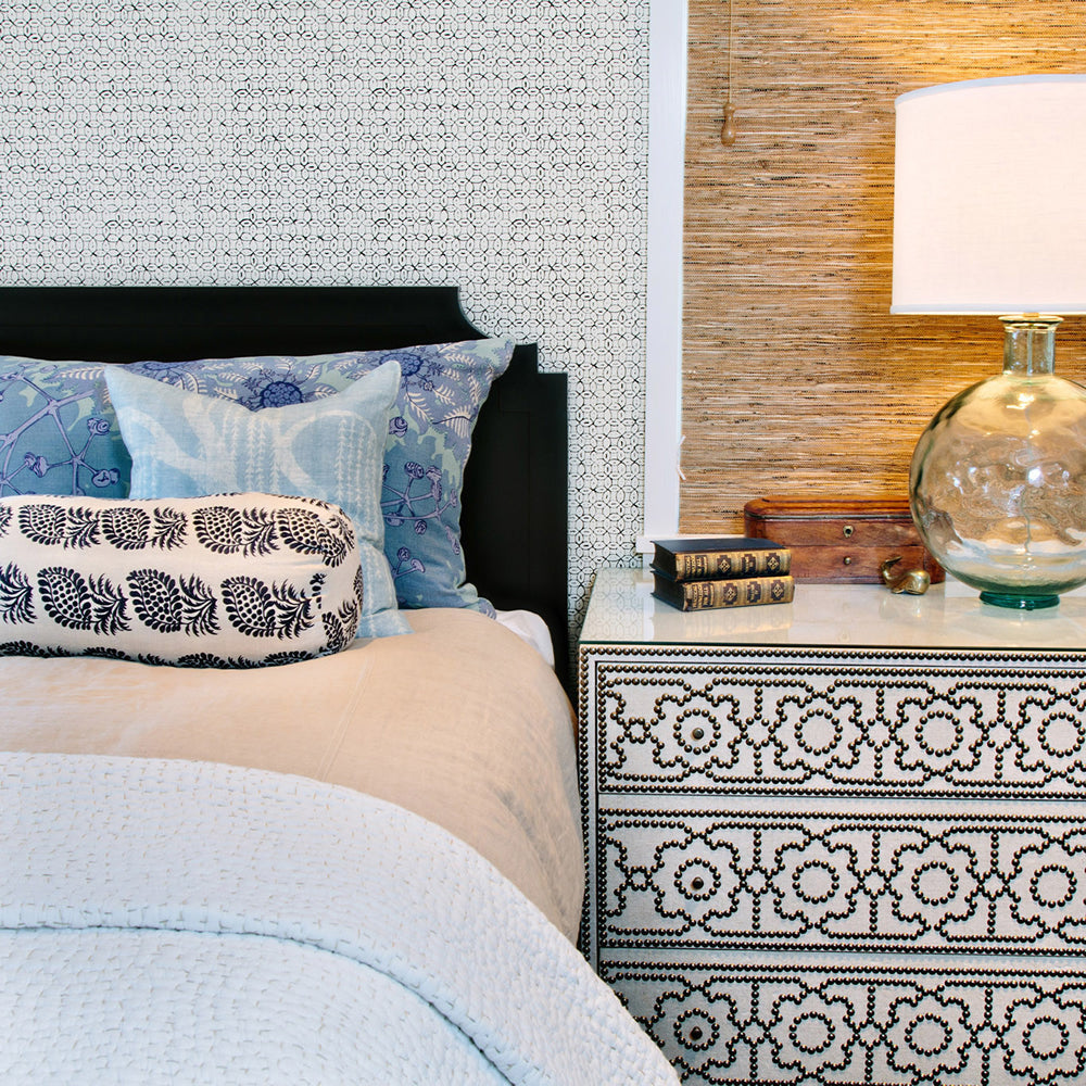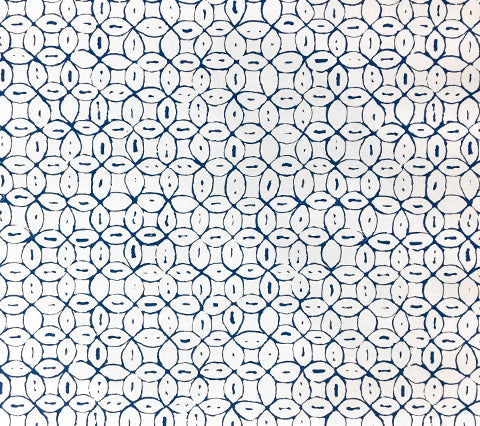 China Seas Wallpaper: Melong Batik - Custom Blue on Off White Paper (5 YARD MINIMUM)