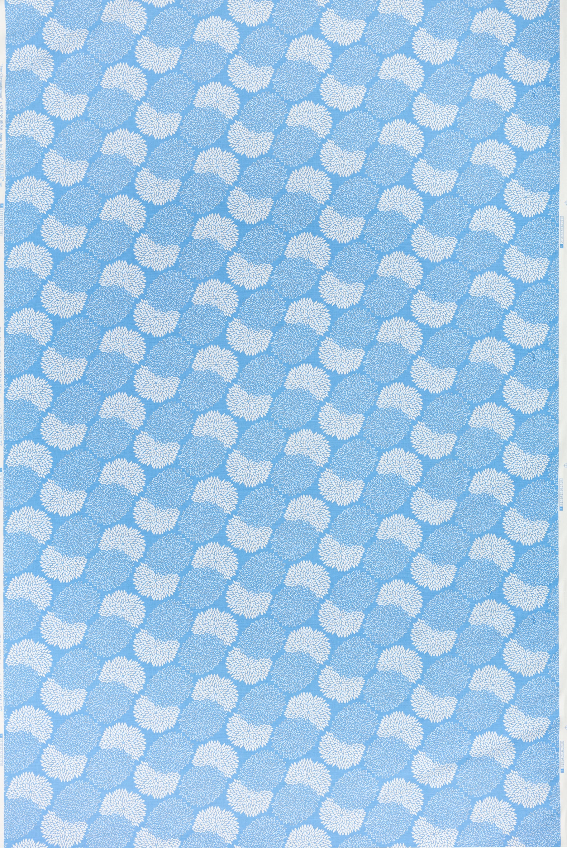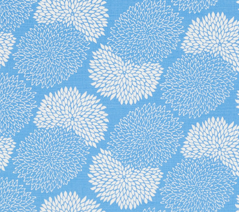 China Seas Fabric: New Chrysanthemum Reverse - Custom New Blue on White Belgian Linen / Cotton