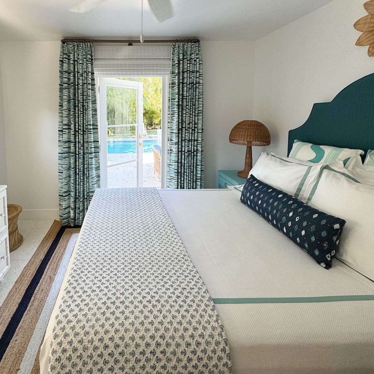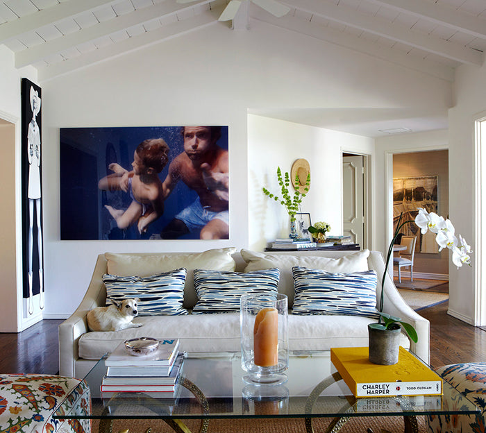 Quadrille Fabric: Ocean - Custom Multi Ice Blue on White Belgian Linen / Cotton