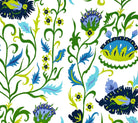 Quadrille Fabric: Uzbek Large Scale - Multi Blues / Green / Royal on White Belgian Linen / Cotton