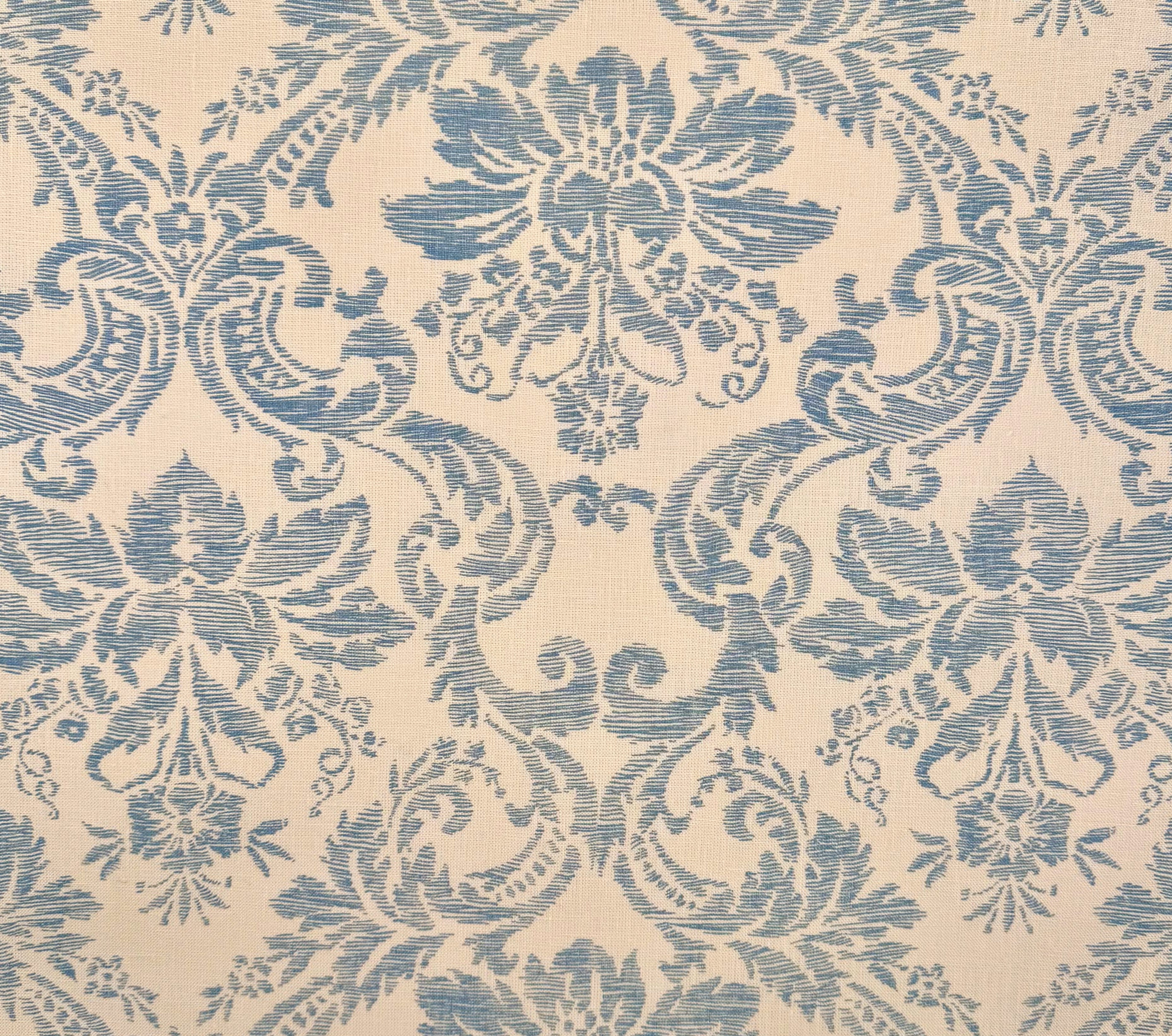 Quadrille Fabric: Victoria - China Blue on Tinted 100% Linen