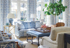 Quadrille Fabric: Victoria - Custom China Blue on Tinted Belgian Linen / Cotton