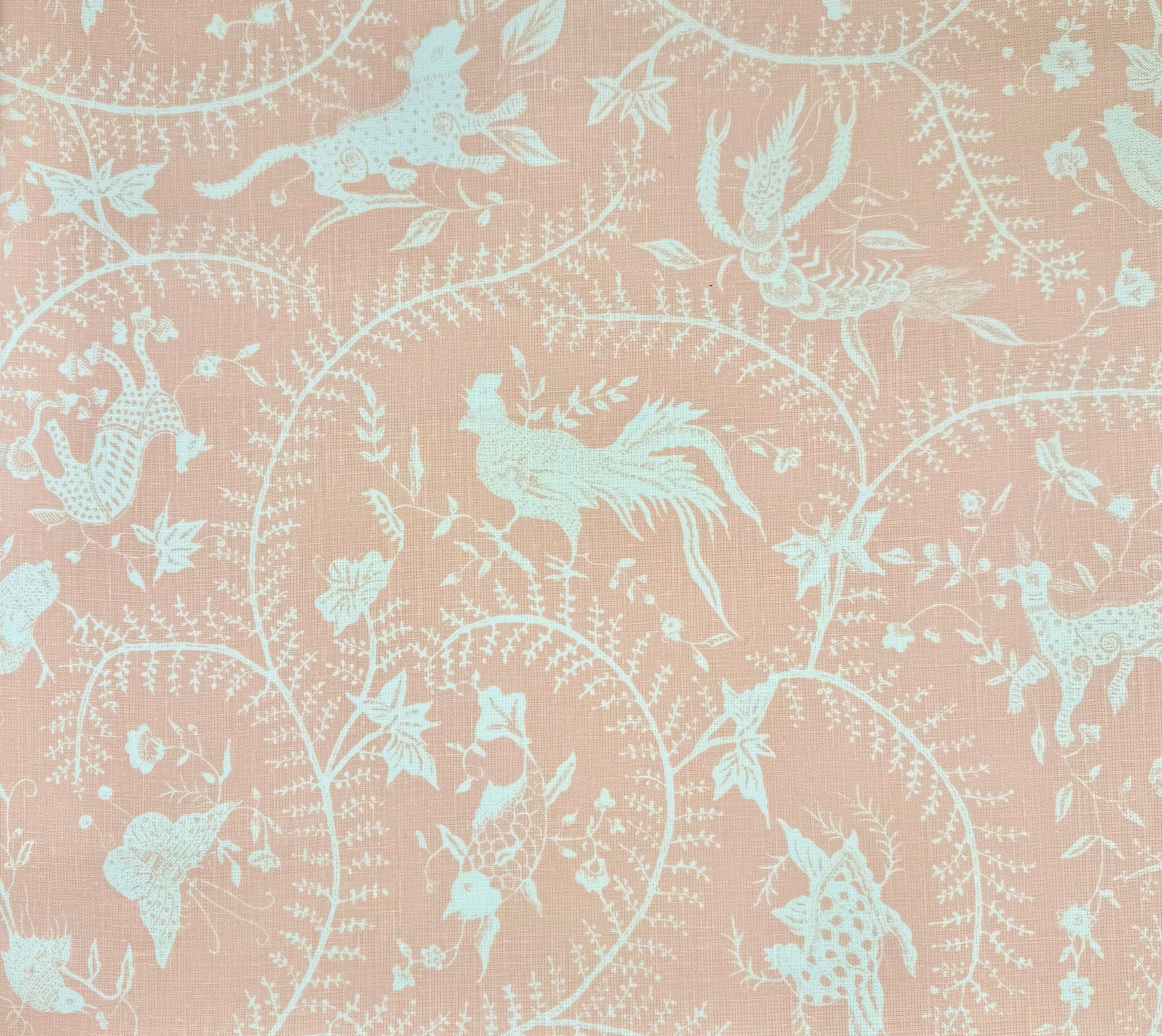 China Seas Fabric: Cirebon Reverse - Custom Old Pink on White 100% Linen