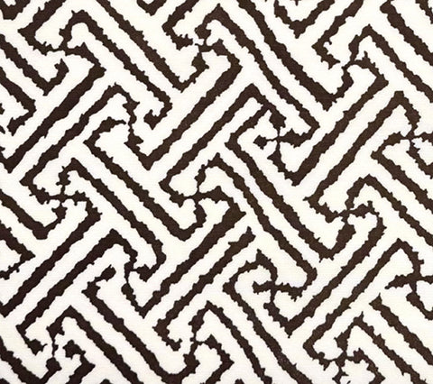 Same Java Grande geometry — the interlocking angular maze that China Seas has been refining since before most fabric houses existed — but in this colorway I am the color of aged maps, of ink on parchment, of the kind of drawing that gets framed rather than filed. Warm. Considered. The brown that knows it is not beige and is quietly grateful for the distinction.