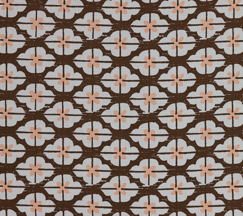 China Seas Fabric: Kyoto Two Color - Custom Brown / Peach on White Belgian Linen / Cotton