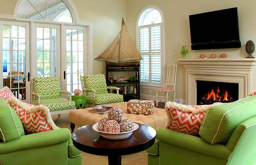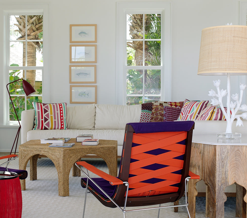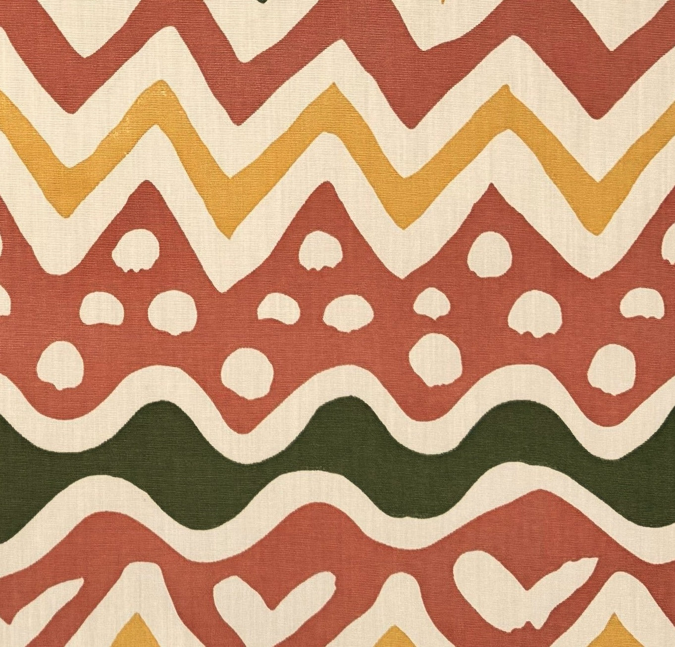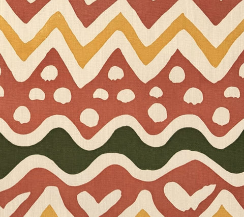 Alan Campbell Fabric: Cap Ferrat - Custom Multi Salmon / Green / Gold on Vellum Suncloth (OUTDOOR)
