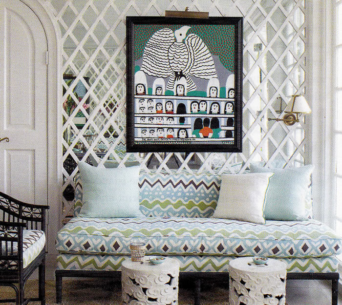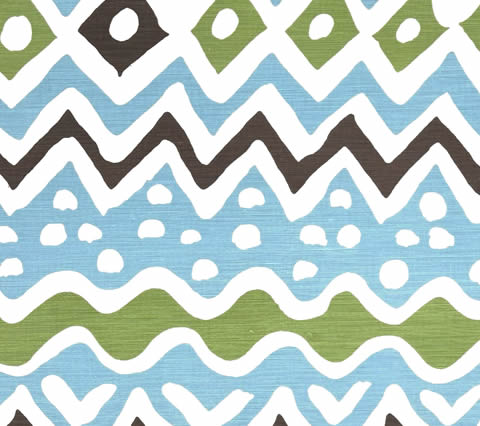 Alan Campbell Fabric: Cap Ferrat - Custom Turquoise / Green / Brown on White Belgian Linen / Cotton