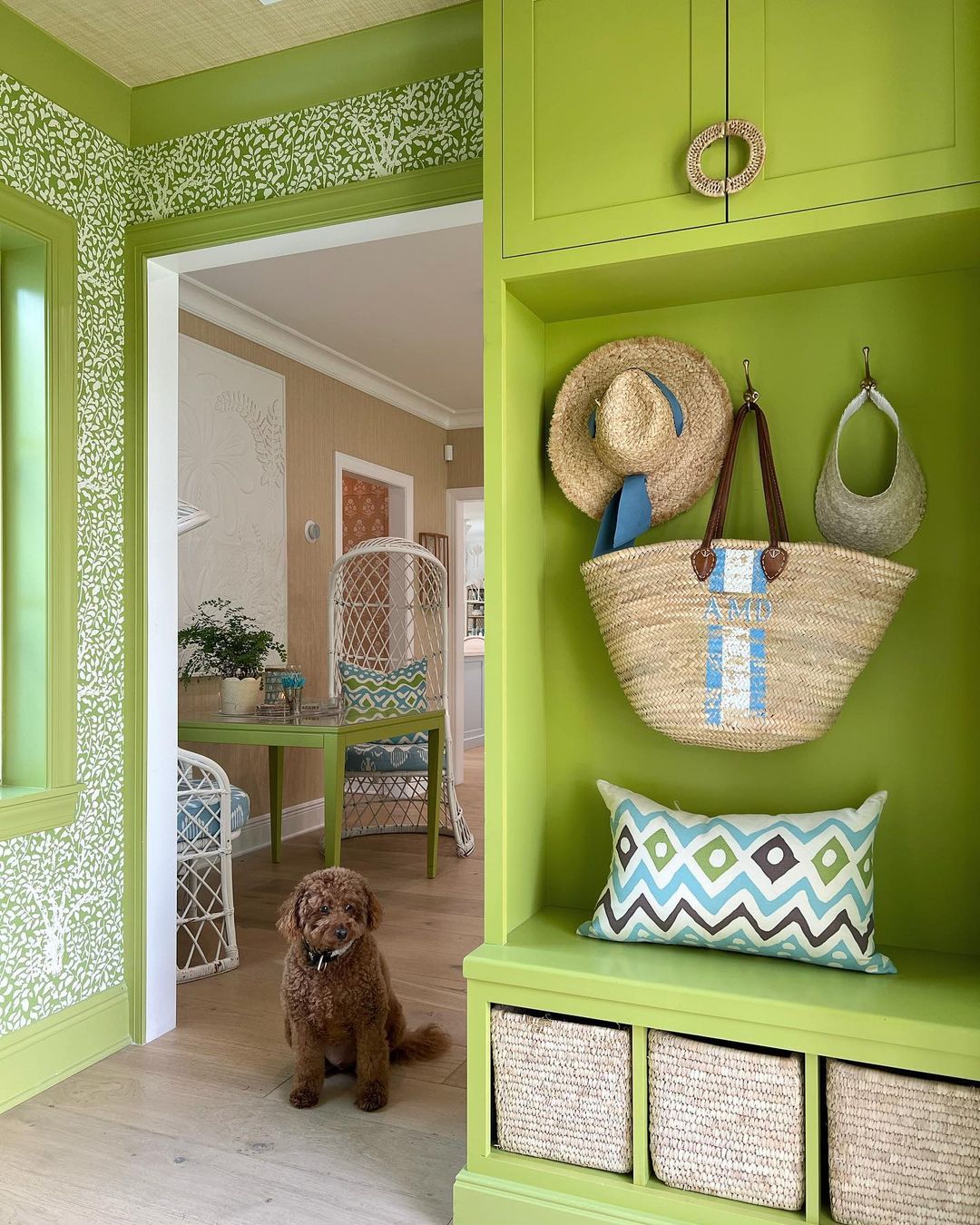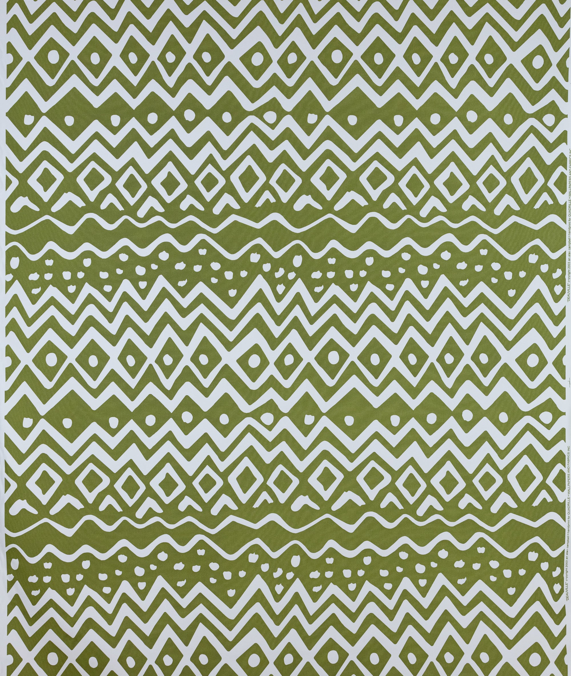 Alan Campbell Fabric: Deauville - Custom Olive Green on White Suncloth