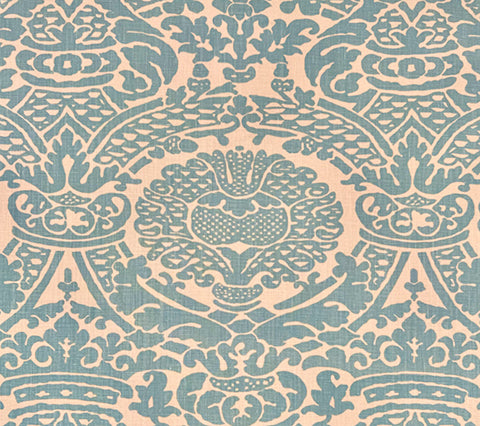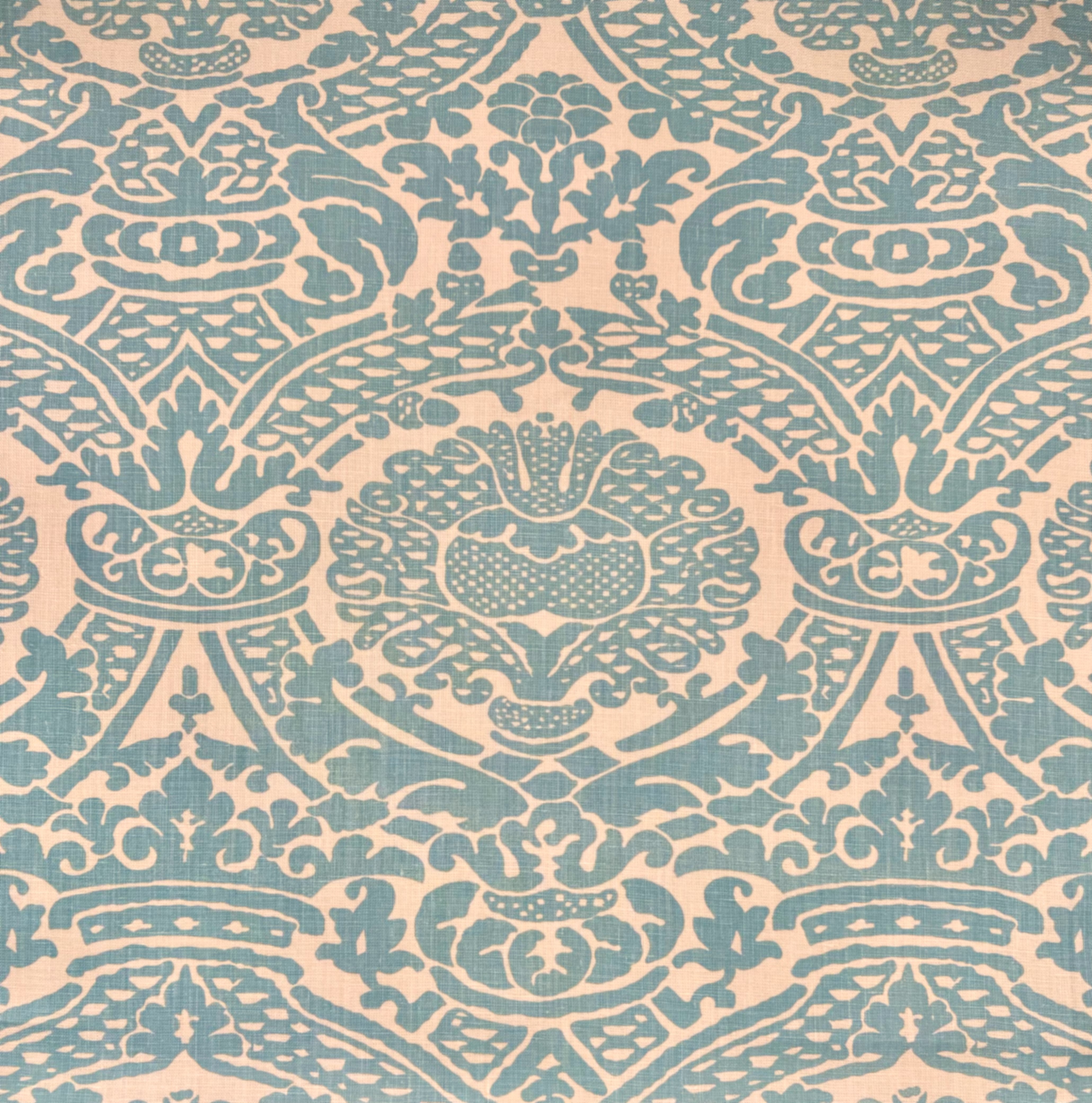 Home Couture Fabric: Principessa - Custom Turquoise on Tan 100% Linen