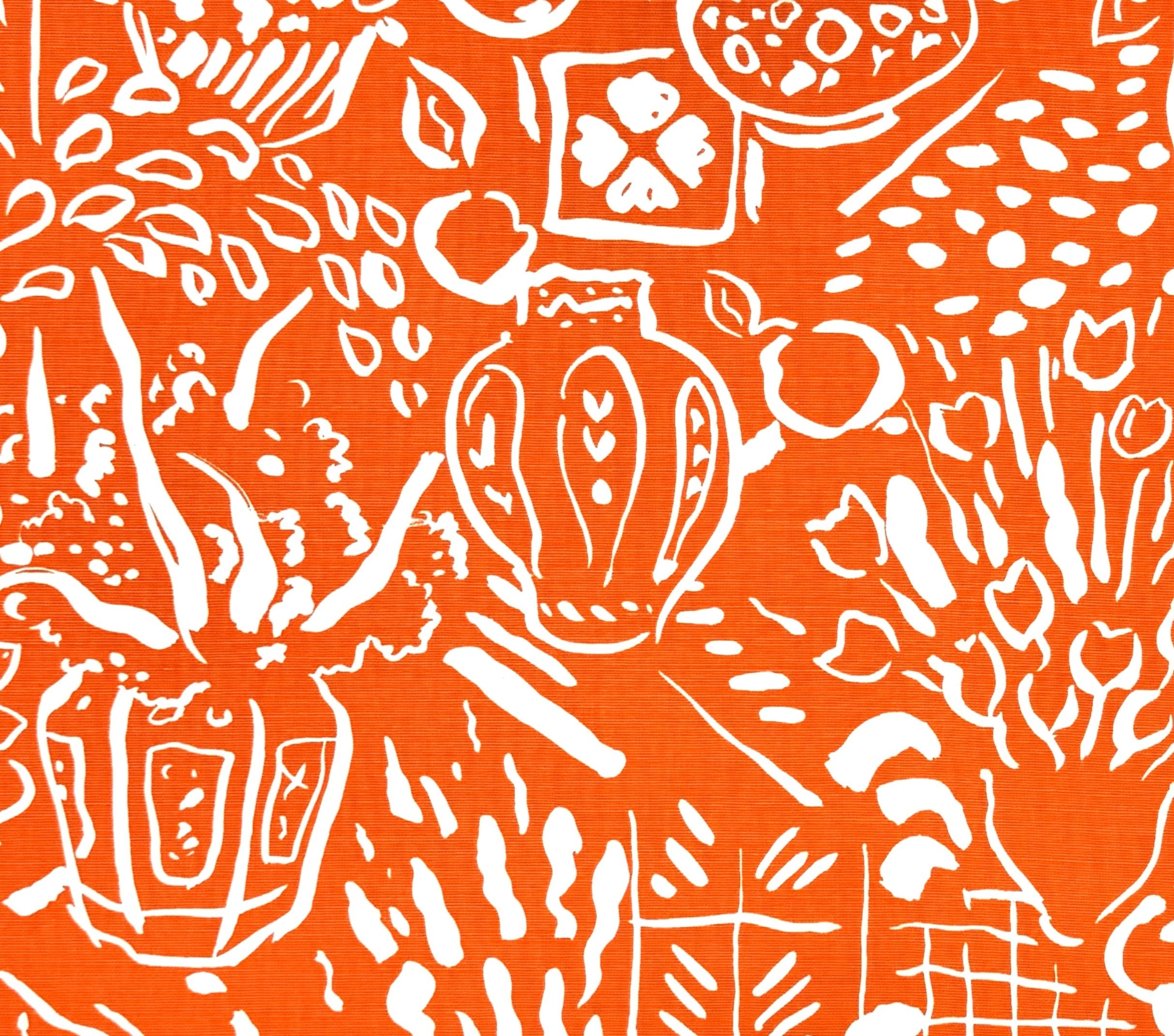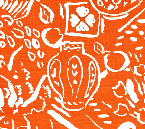 China Seas Fabric: Bonaire II - Custom New Orange on White Belgian Linen / Cotton