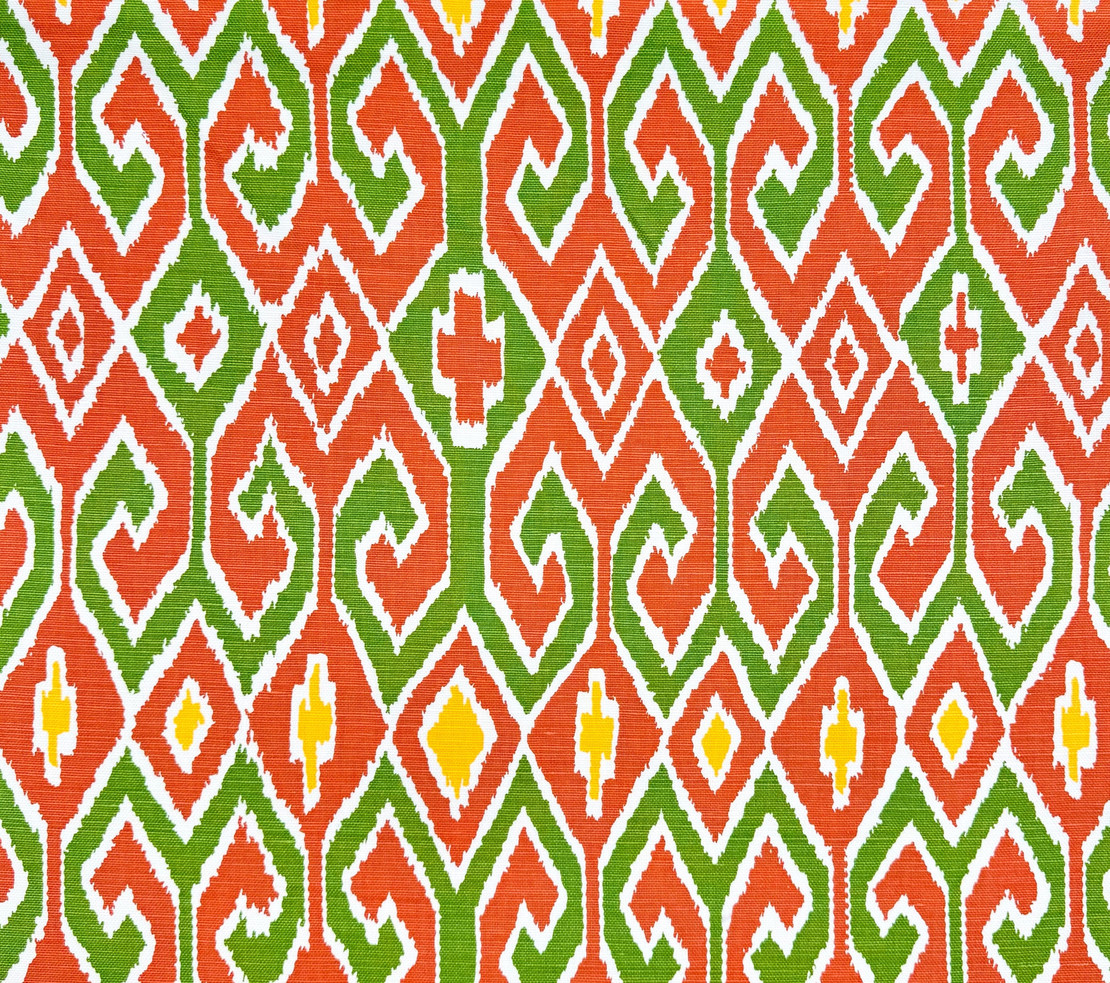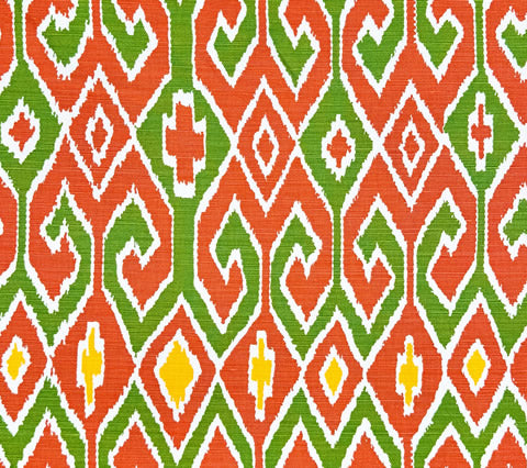 China Seas Fabric: Aquarius - Custom Brique / Leaf / Yellow / Cream on Belgian Linen/Cotton