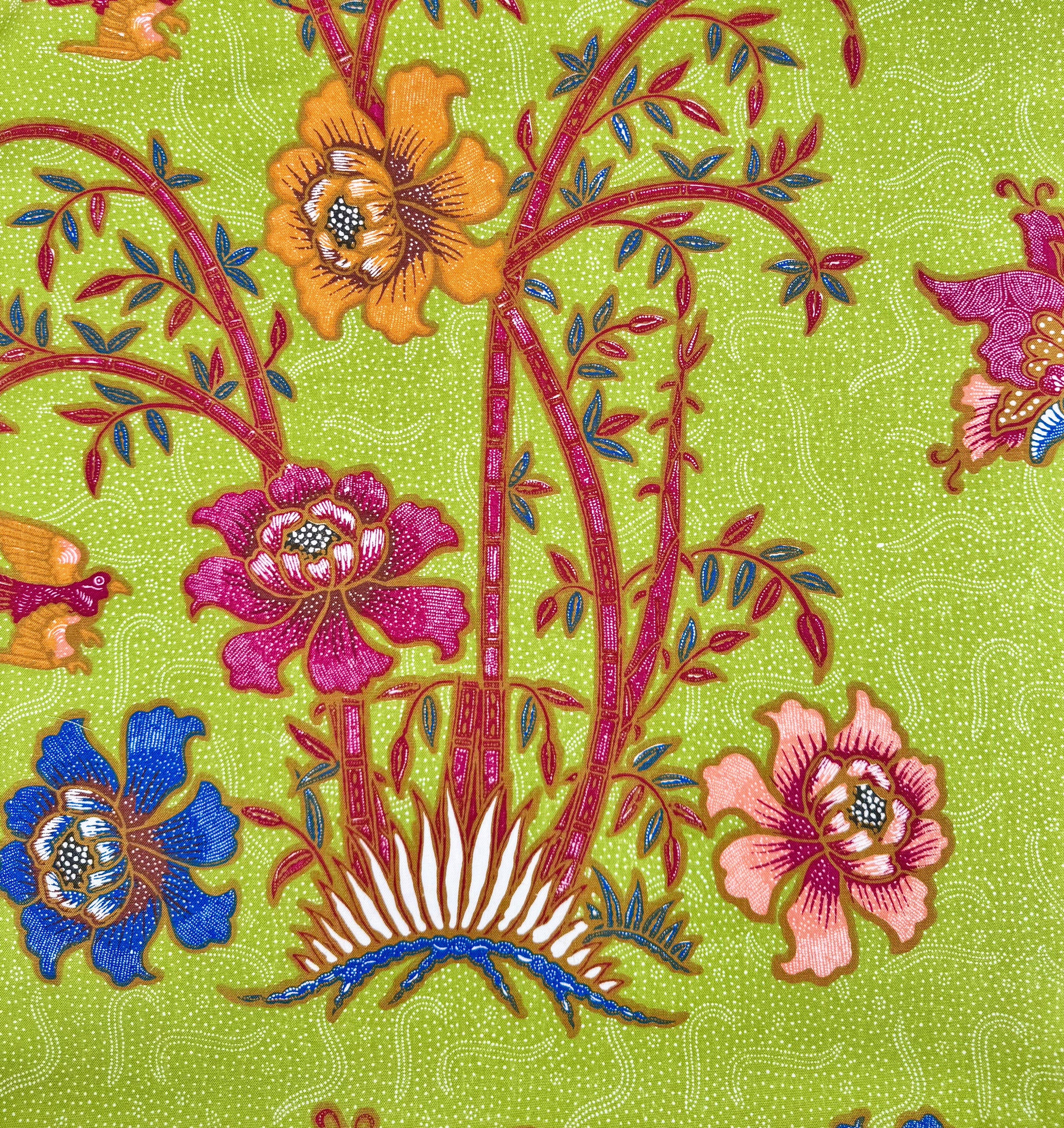 China Seas Fabric: Lim Bamboo - Custom Multi Jungle Green on 100% Cotton