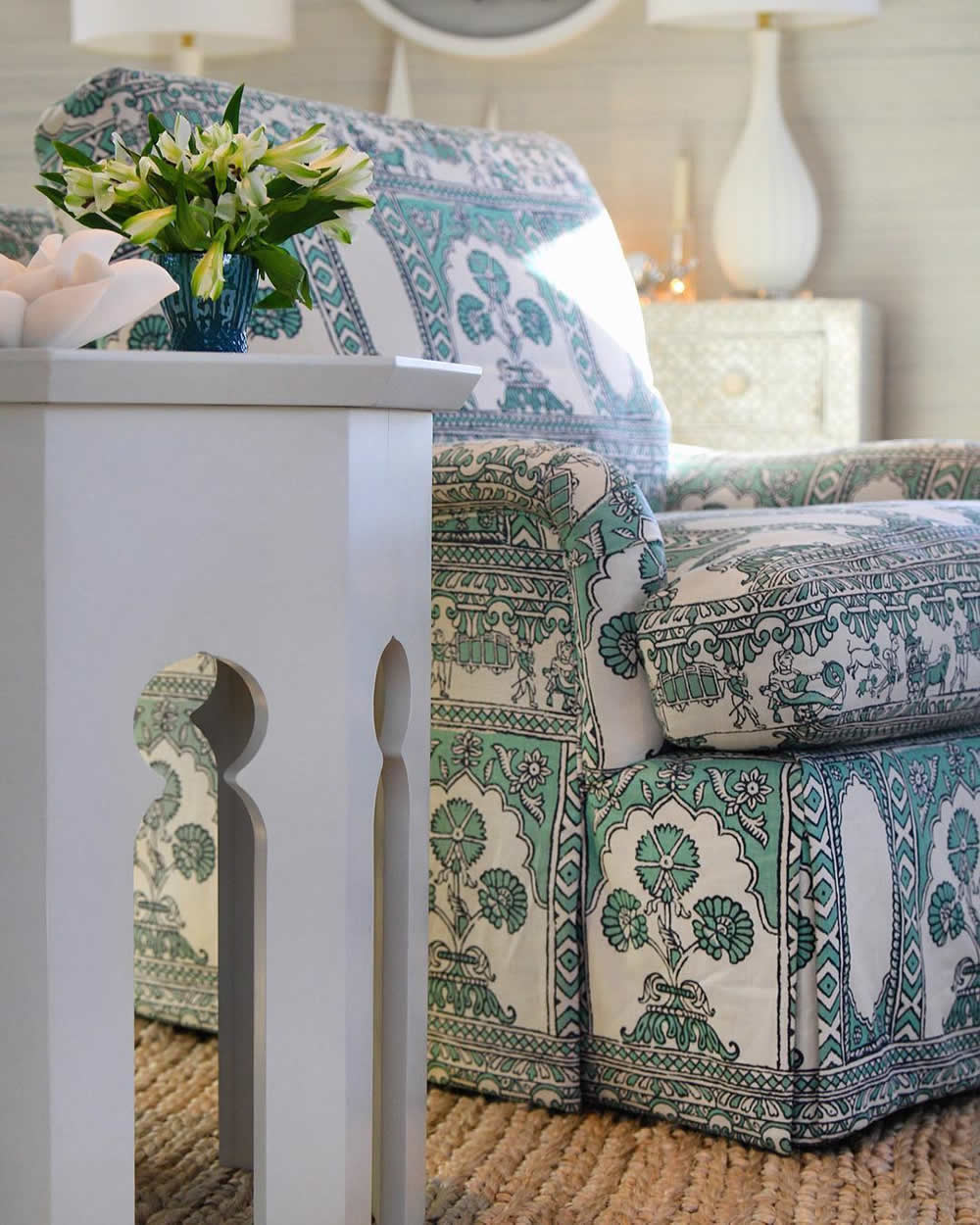 China Seas Fabric: Sultan II - Custom Dark Lilac on White 100% Linen