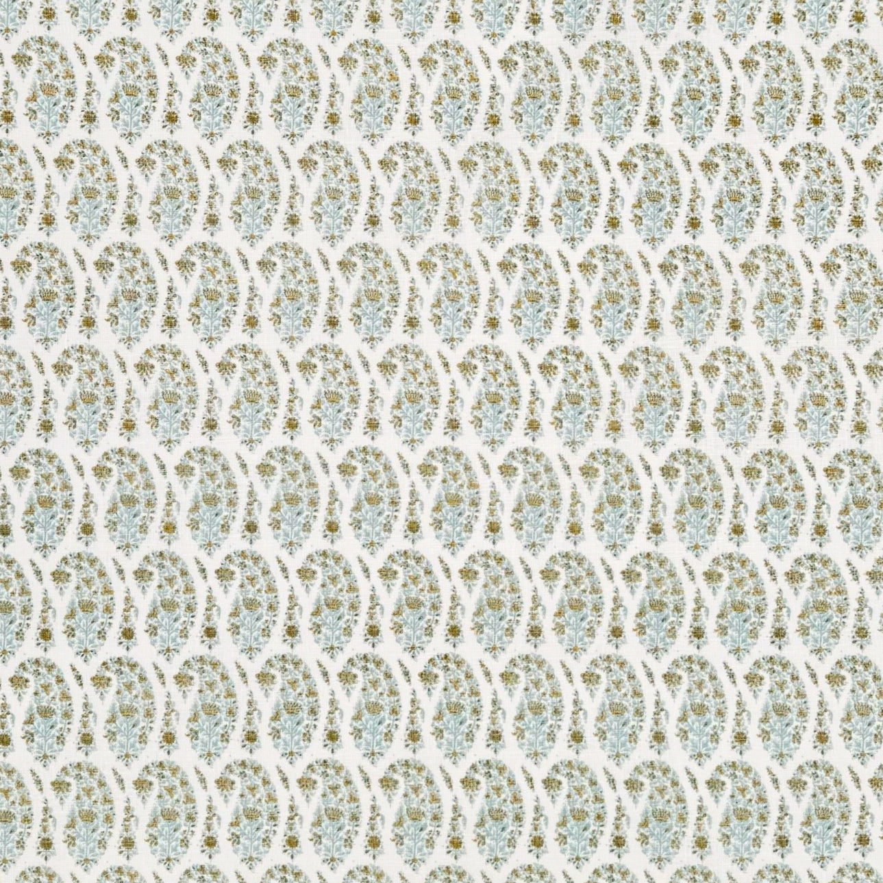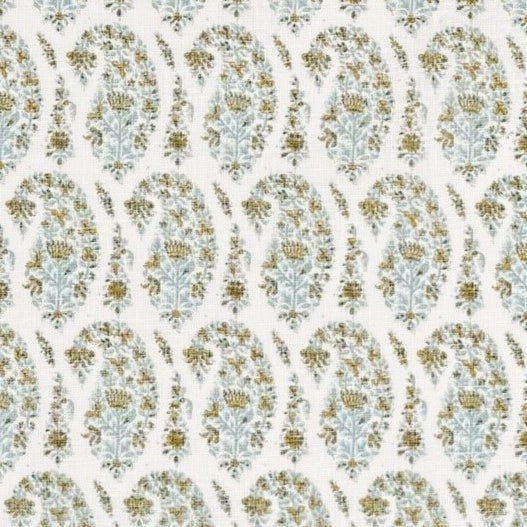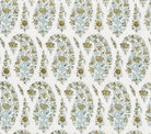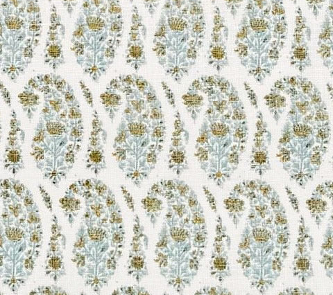 Home Couture Fabric: Kashmir Paisley Petite - Custom Celadon on Cream 100% Linen