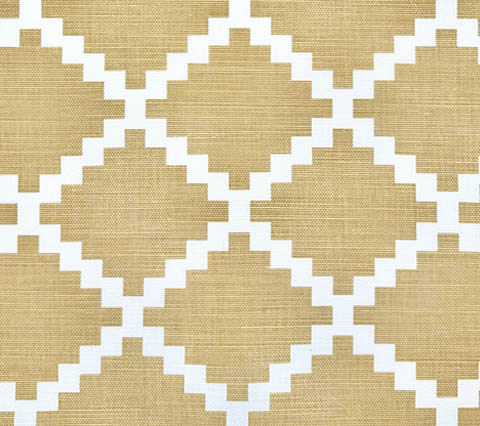 Quadrille Fabric : Lulu DK Chant Reverse II - Custom Light Camel on Light-Tint Belgian Linen / Cotton