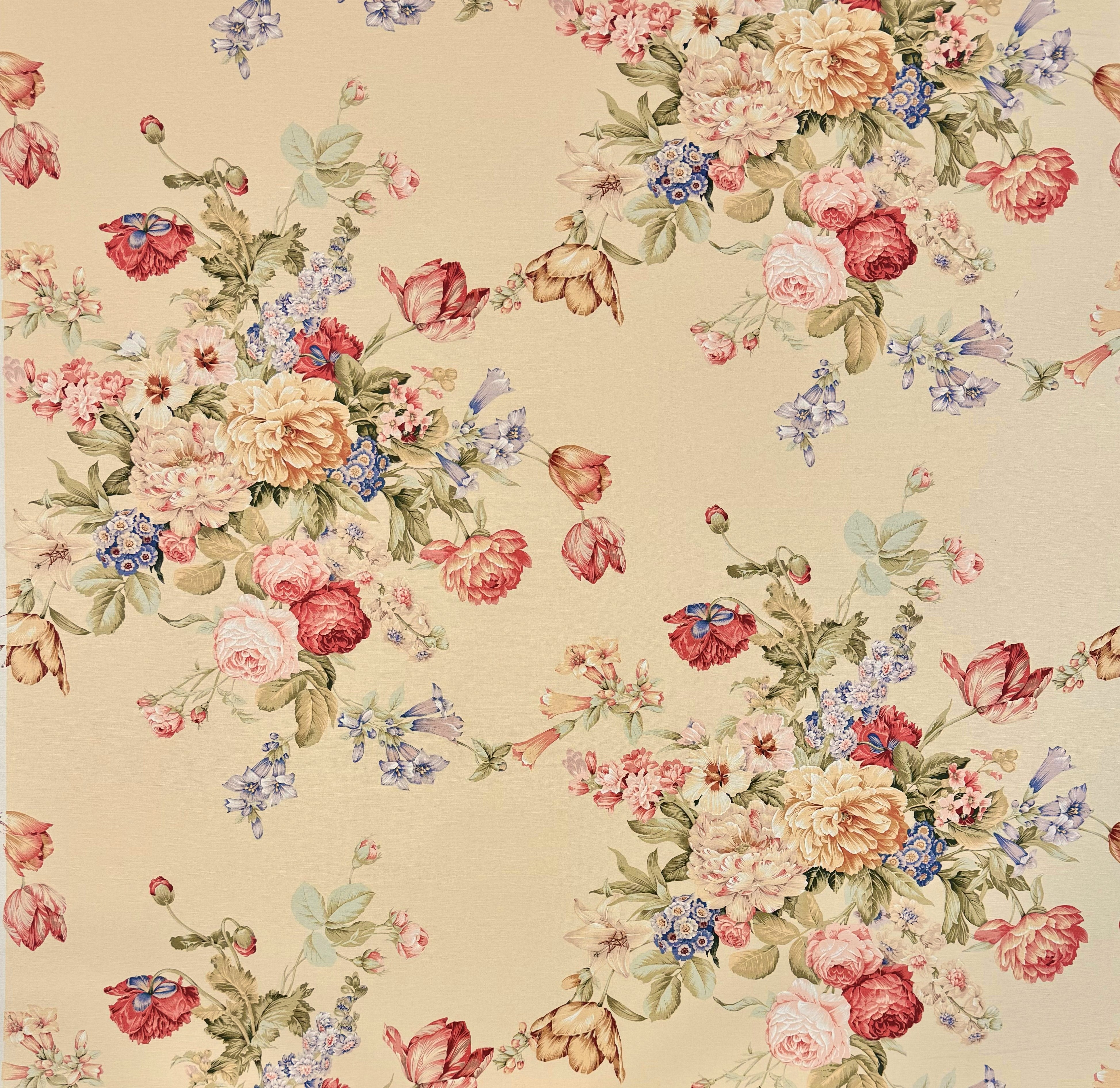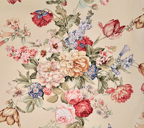 Quadrille Fabric: Virginia - Multi Color on Old Beige; printed in Italy on Linen / Cotton ground
