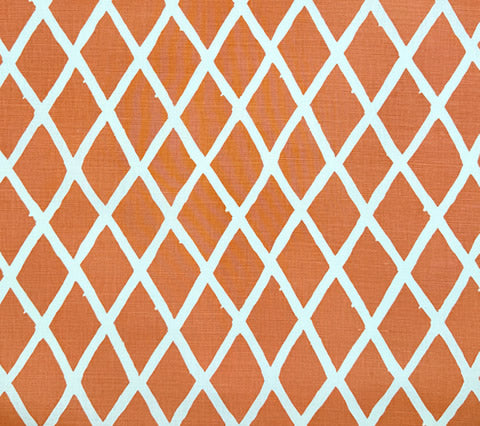 China Seas Fabric: Lyford Diamond Blotch - New Shrimp on Tinted Belgian Linen / Cotton