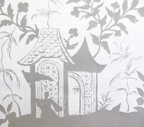 China Seas Fabric: Lyford Pagoda - Custom Gray on White 100% Linen